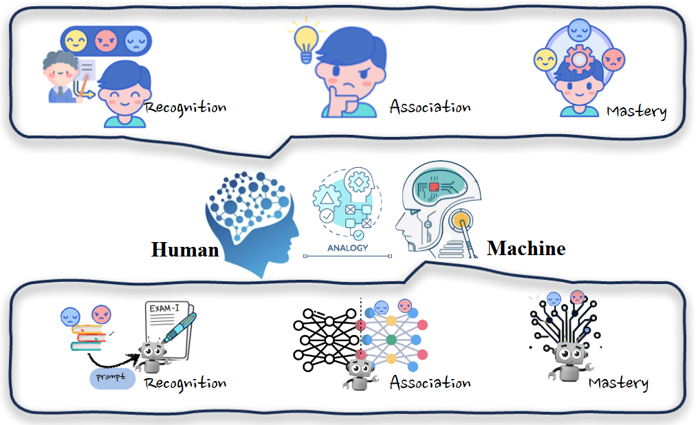 LLM 的发展已达到其能力与人类认知过程极为相似的程度,尤其是在学习和获取知识方面。借鉴人类学习的方式,我们可以将这些概念类比应用于编辑 LLM 的过程,如图 2 所示。